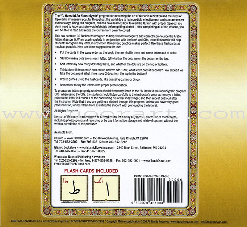 Noorani Qa'idah: Master Reading the Qur'an (30 Cards, Arabic & English) القواعد النورانية