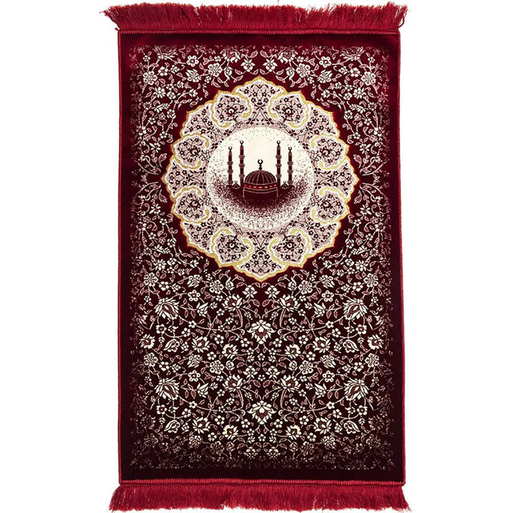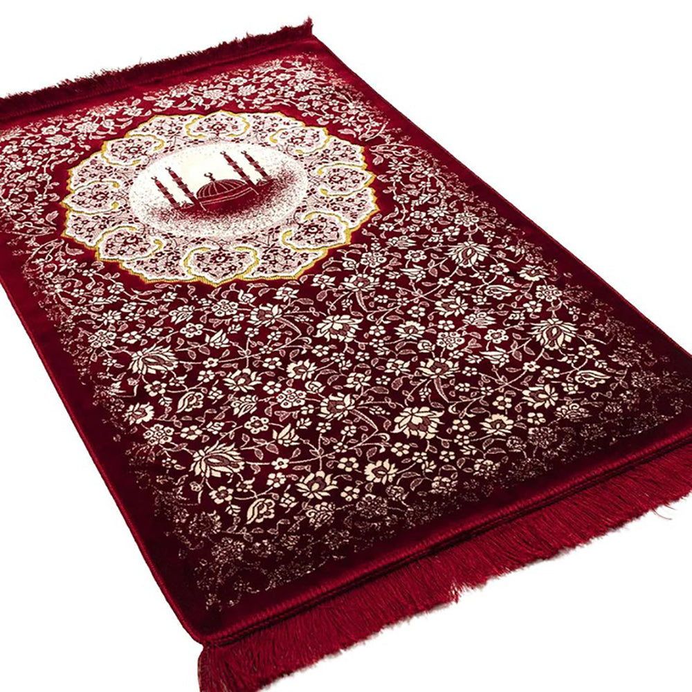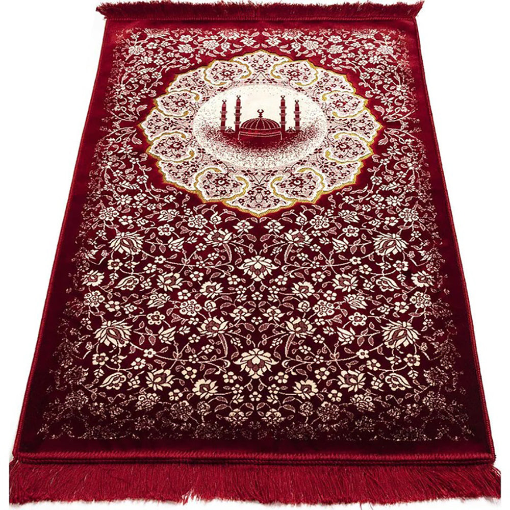 Plush Velvet Islamic Prayer Rug - Floral Mosque - 3 Different Colors