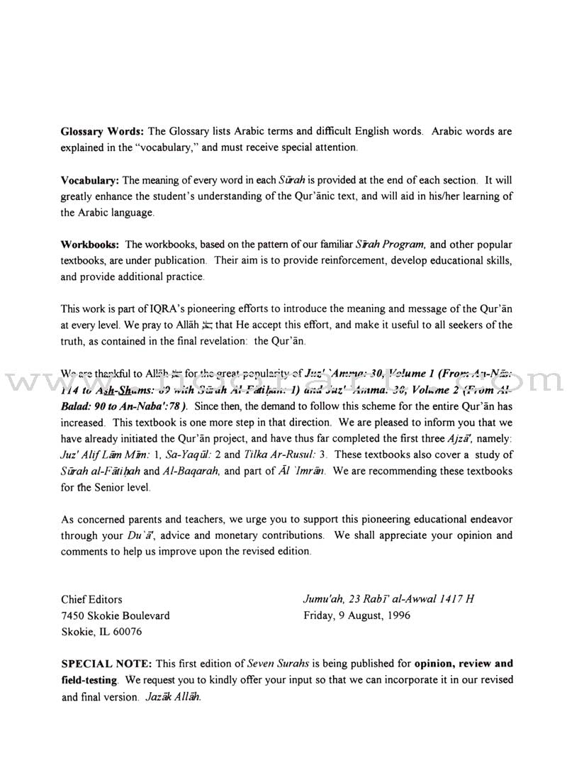 Seven Surahs for the Classroom Textbook (Junior Level)