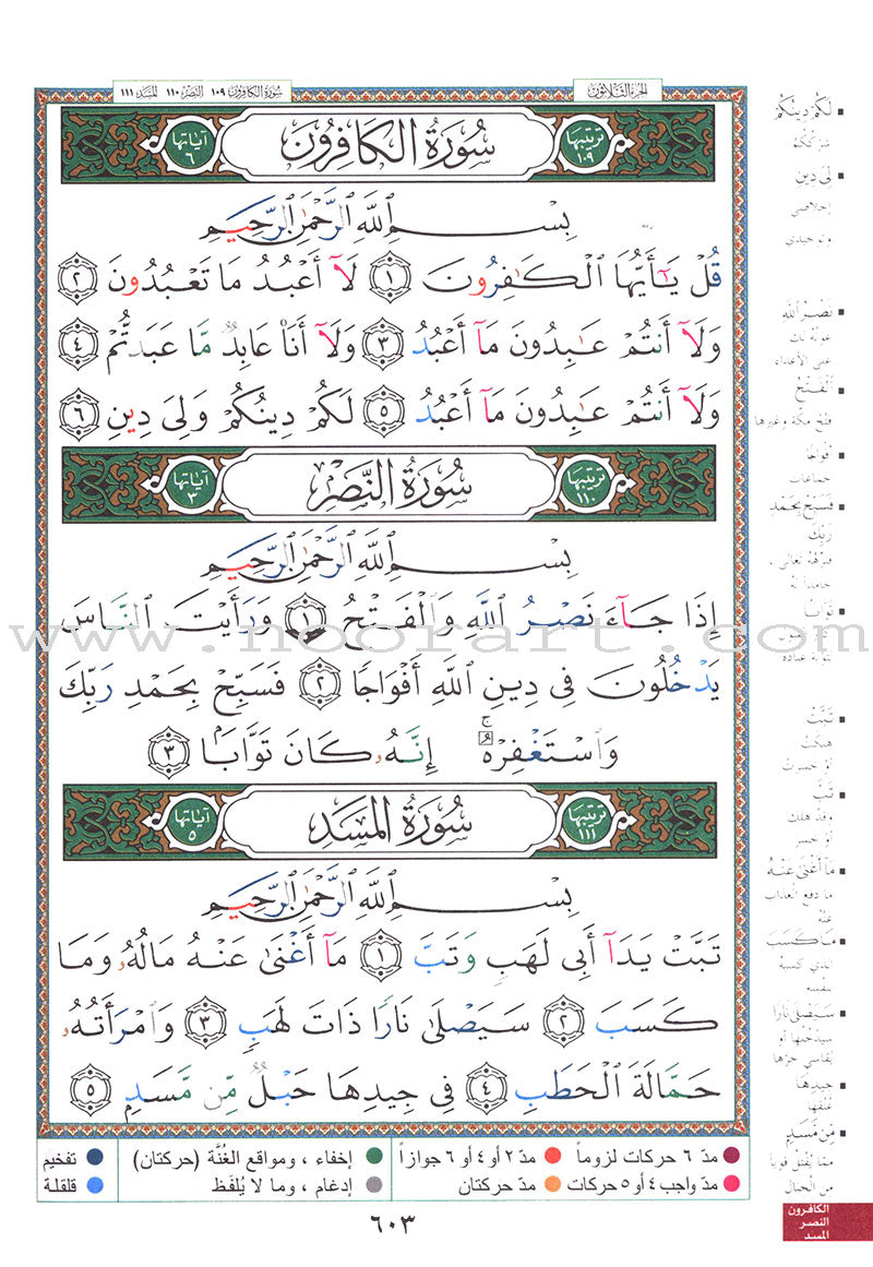 This complete color-coded Tajweed Quran (from Surah al-Fatiha to Surah al-Nas) has strong binding and is a beautifully-designed heavy-duty hardcover.... Read more
