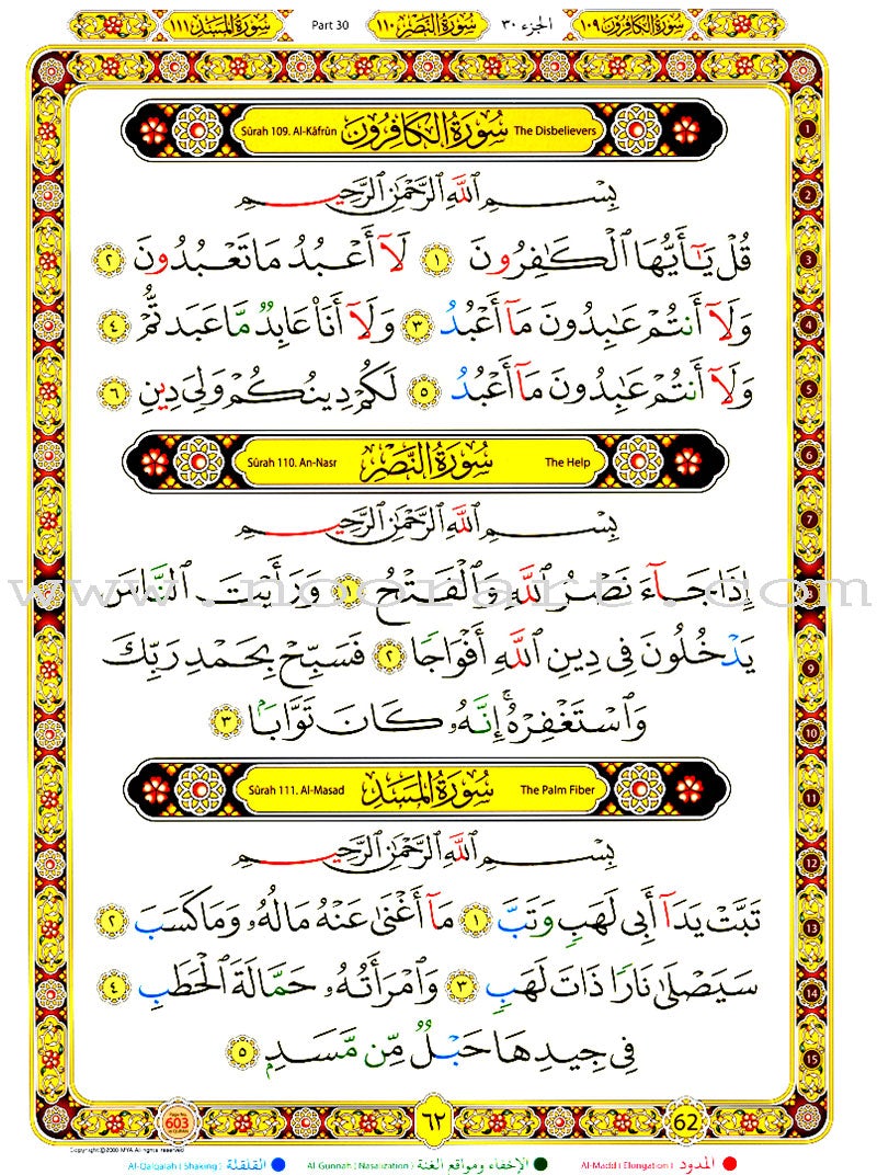 The Last Three Parts of the Glorious Qur'an (Color-Coded Tajweed Rules) تطبيقات القواعد النورانية (العشر الاخير)