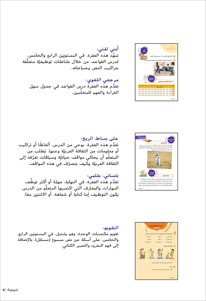 يشتمل الكتاب على 5 وحدات تعلّميّة، وتتضمّن كلّ وحدة على درسين وتقويمٍ واحد. يهدف الكتاب إلى تحقيق كفايات التواصل الأساسيّة... Read more